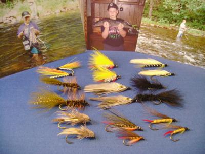 Mickey Finn/ 6+8, Olive Woolly Bugger/ 6+8, Black Woolly Bugger/ 6+8, Dans Brookie/ 6+10, Gray Ghost/two-#6, Muddler/ 6+8, Black Ghost/two-#6, Brunette Smelt/ two-#4, Yellow Marbou/ 6+8, Wardens Worry/ 6+8
