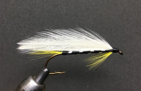 The blackghost streamer has its origins in the Rangely Lakes region of Maine. This pattern works well in the streams for brookies and landlocks as well as being a good choice for trolling in the lakes. The Black Ghost is often my first choice when fishing a small trout pond and there is no obvious hatch. Offered in sizes #6 and #4