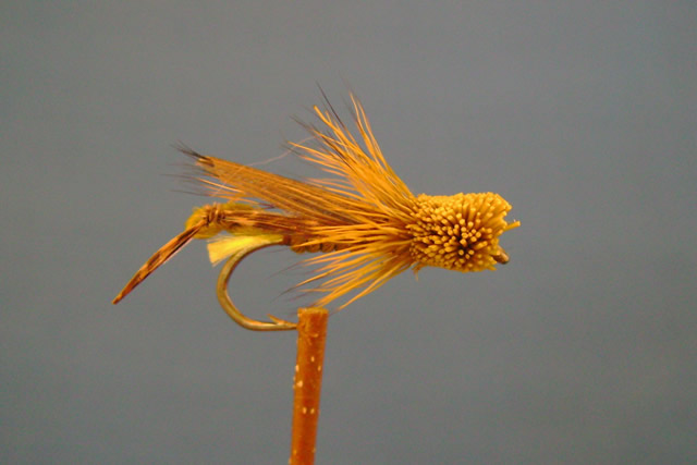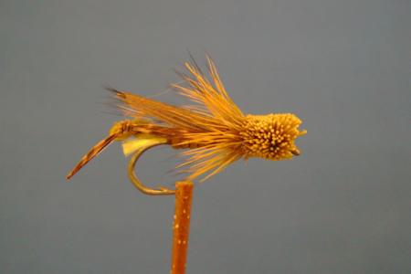 Size #8. Very realistic pattern, floats low in the water. Can be very effective along stream banks with a lot of grass and low vegitation. The Deer Hair Hopper is a good choice from mid summer through early fall. Try letting this fly dead drift through a likely spot, give it just a little twitch or two but don't over do it. Keep it as natural a presentation as possible.